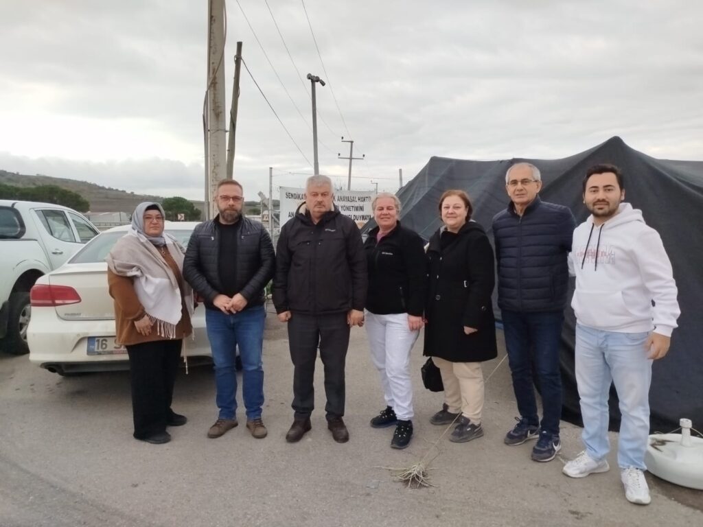 Zafer Partisi Mustafakemalpaşa İlçe Başkanı Göksel Şenkuyumcu, Eker Süt Ürünleri’nde Tek Gıda-İş Sendikası’na üye oldukları için işten çıkarılan ve 442 gündür grevde olan işçileri ziyaret ederek destek mesajı verdi.