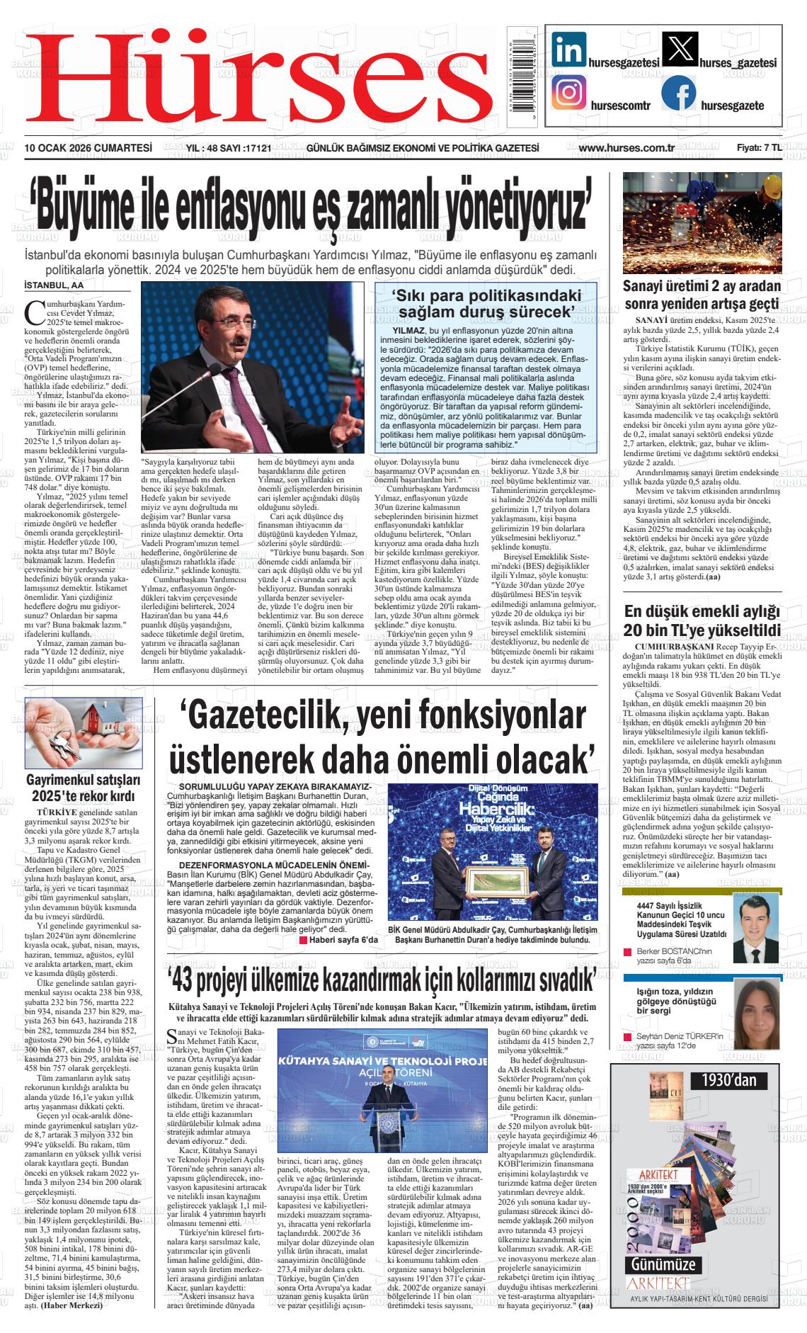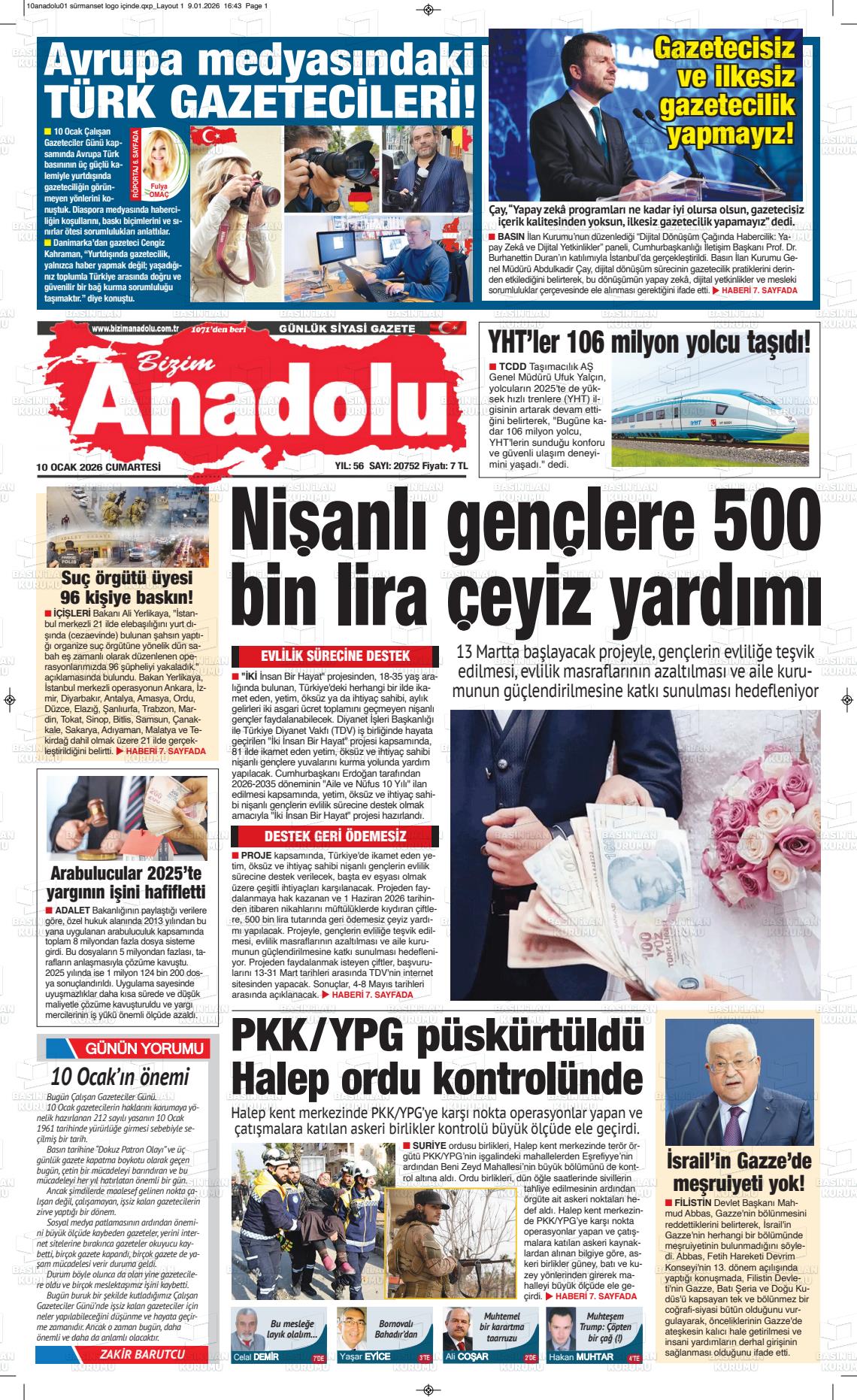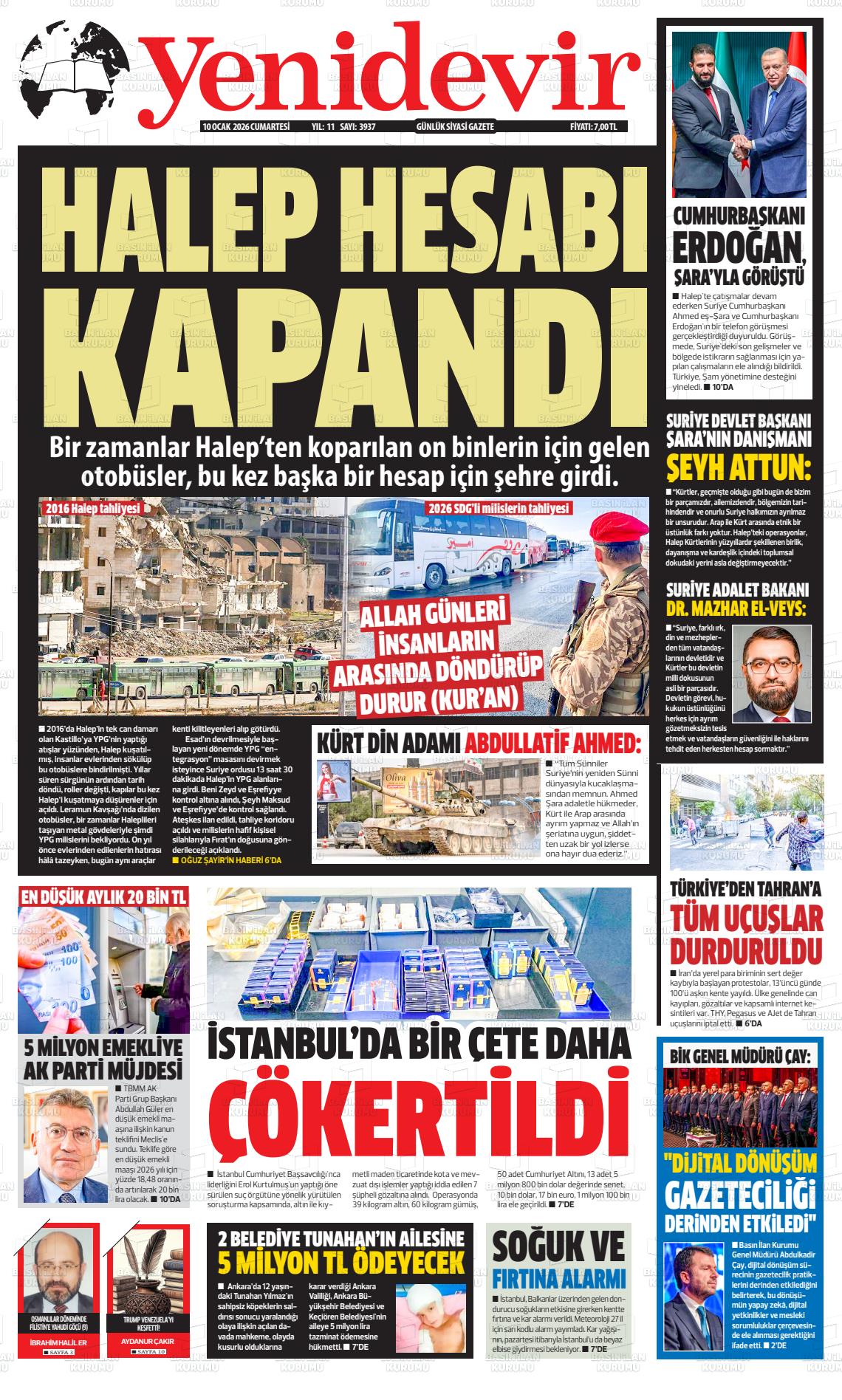 10 Ocak 2026, Cumartesi Günü Manşeti