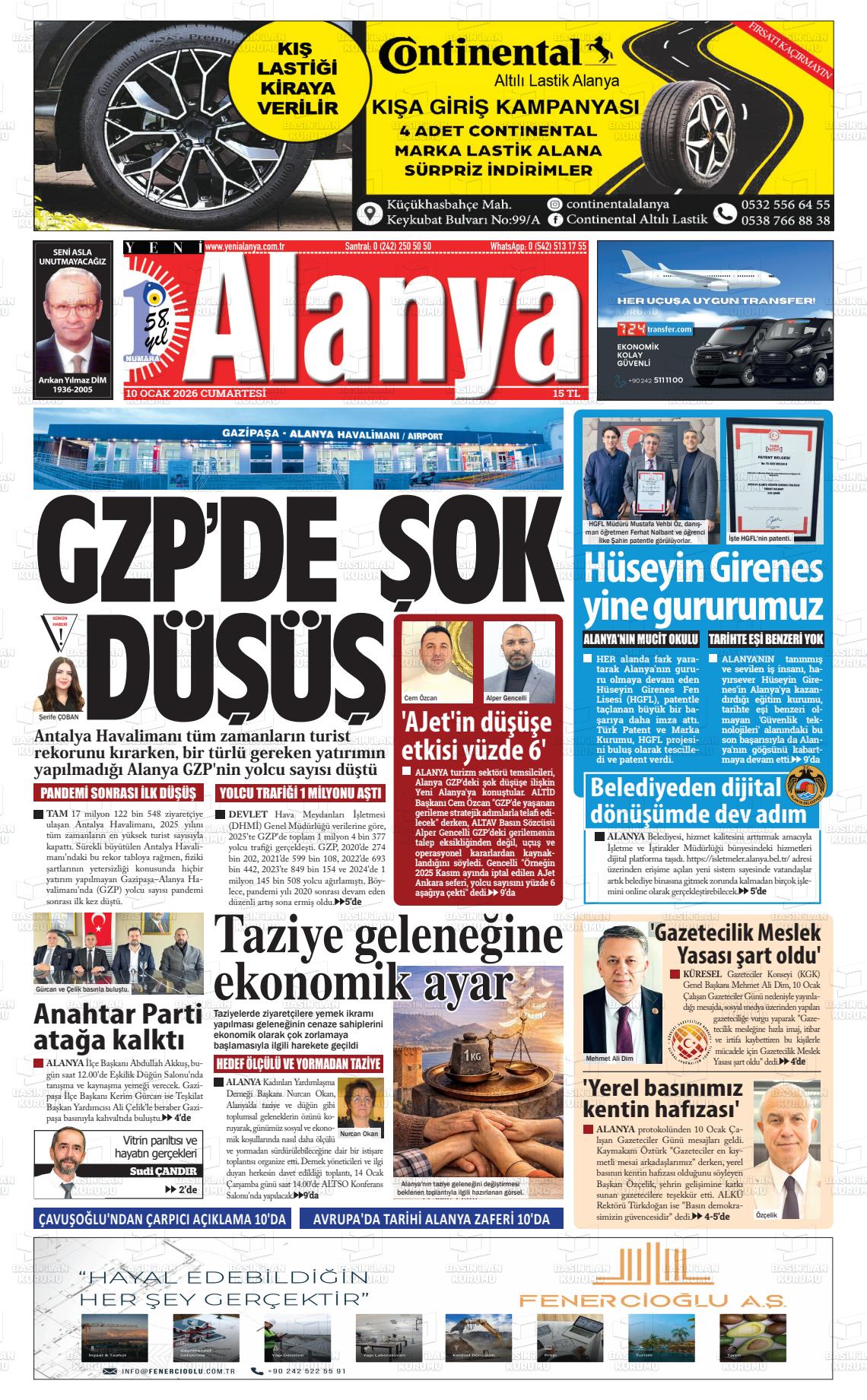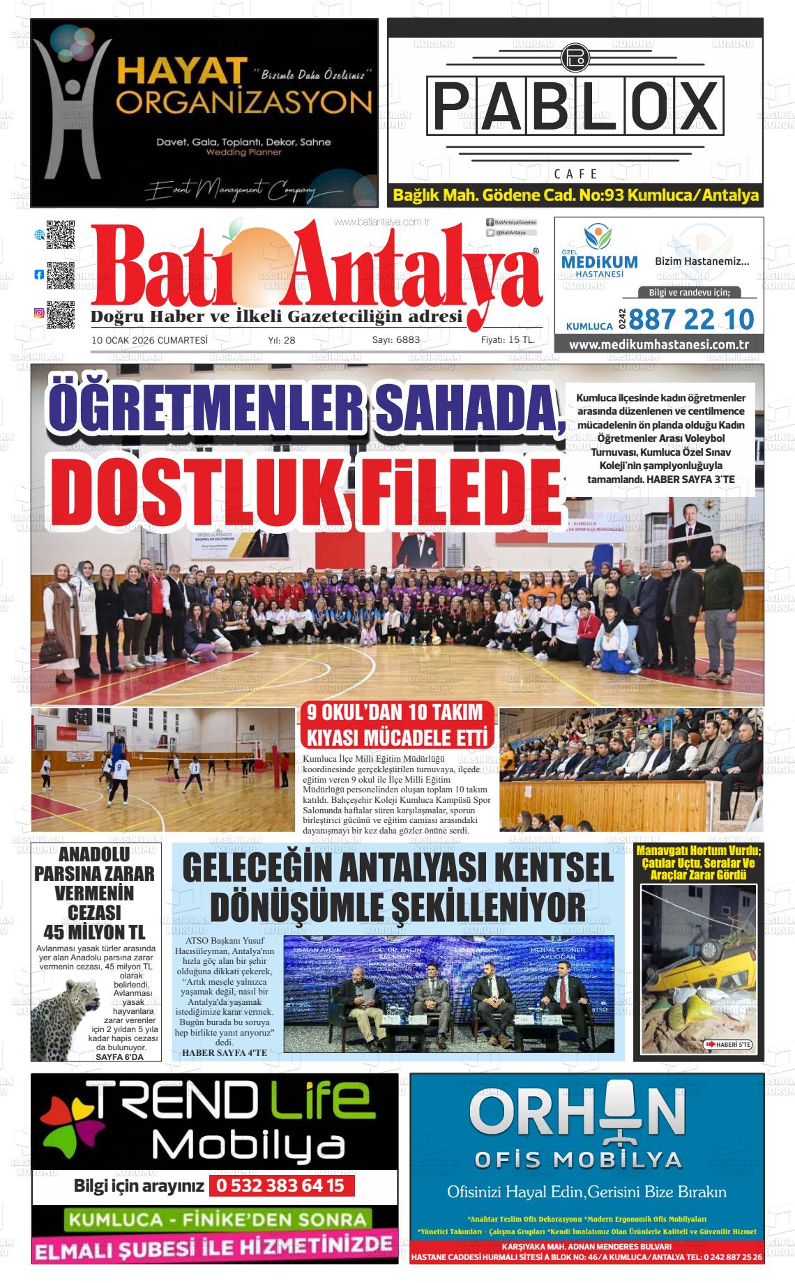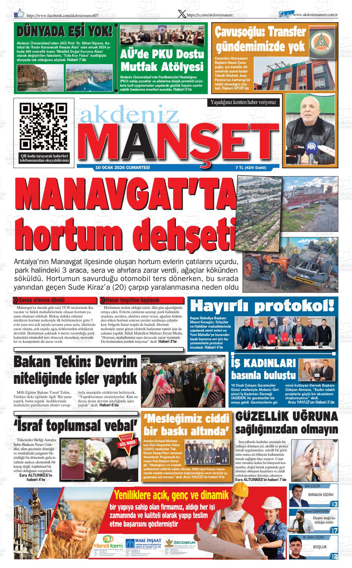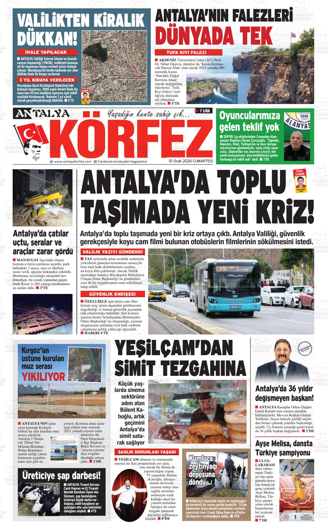 Antalya Yerel Gazeteleri 10 Ocak 2026, Cumartesi Günü Manşeti