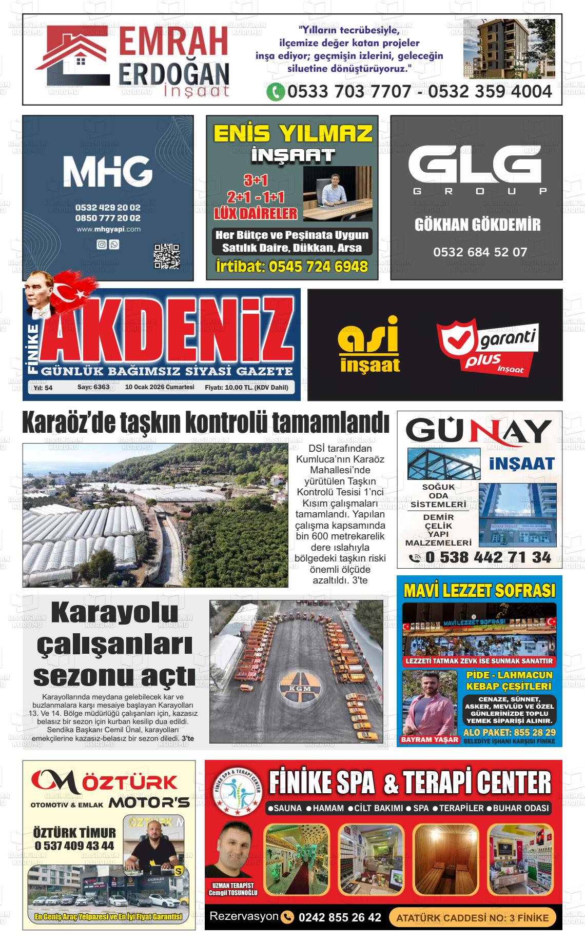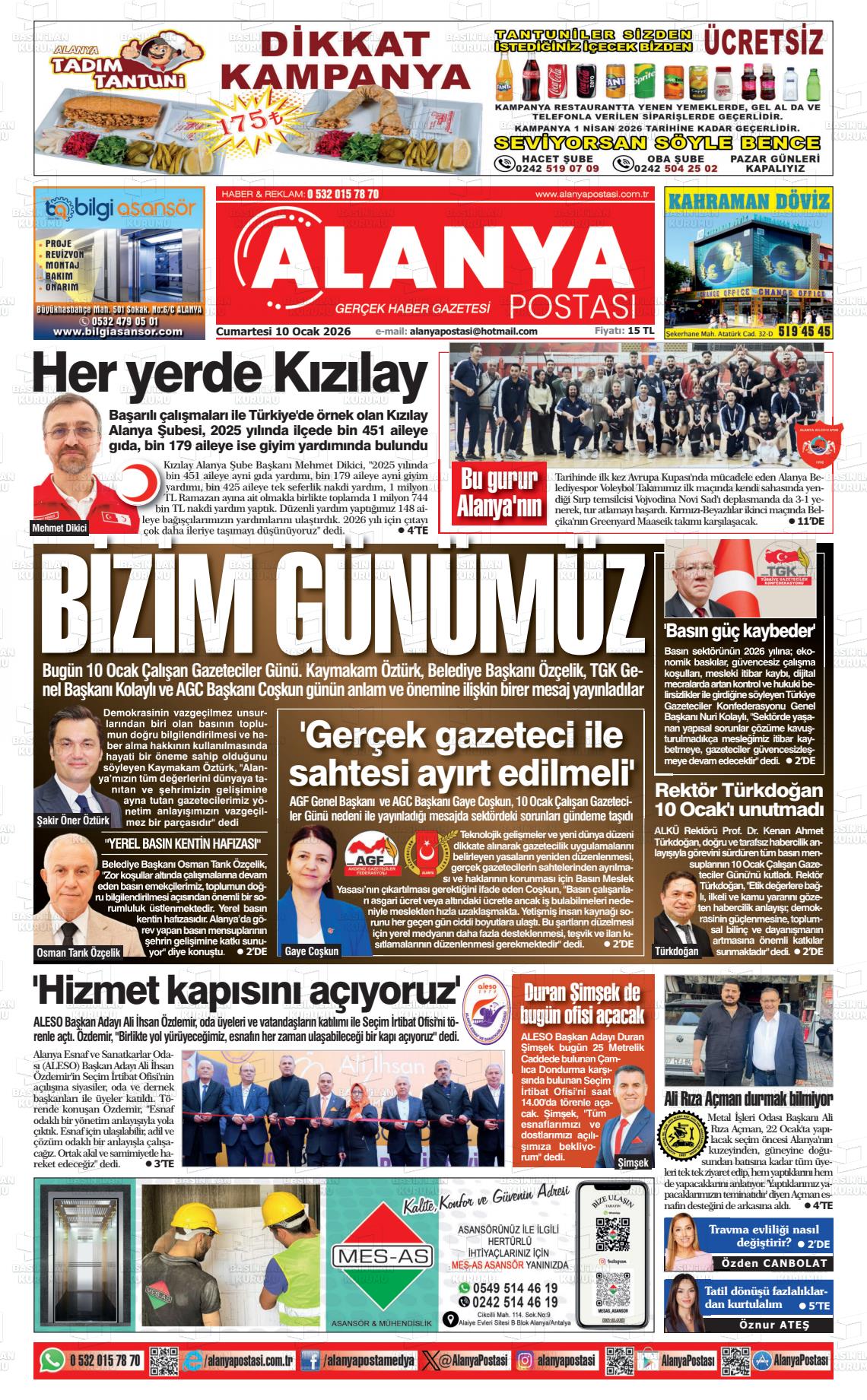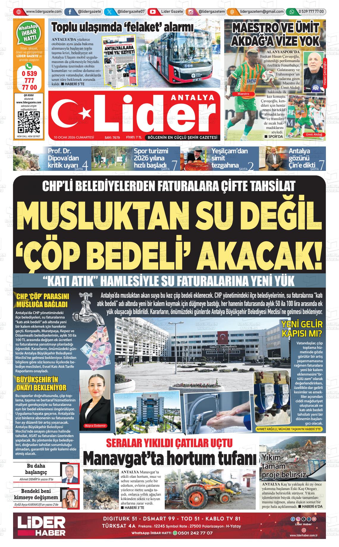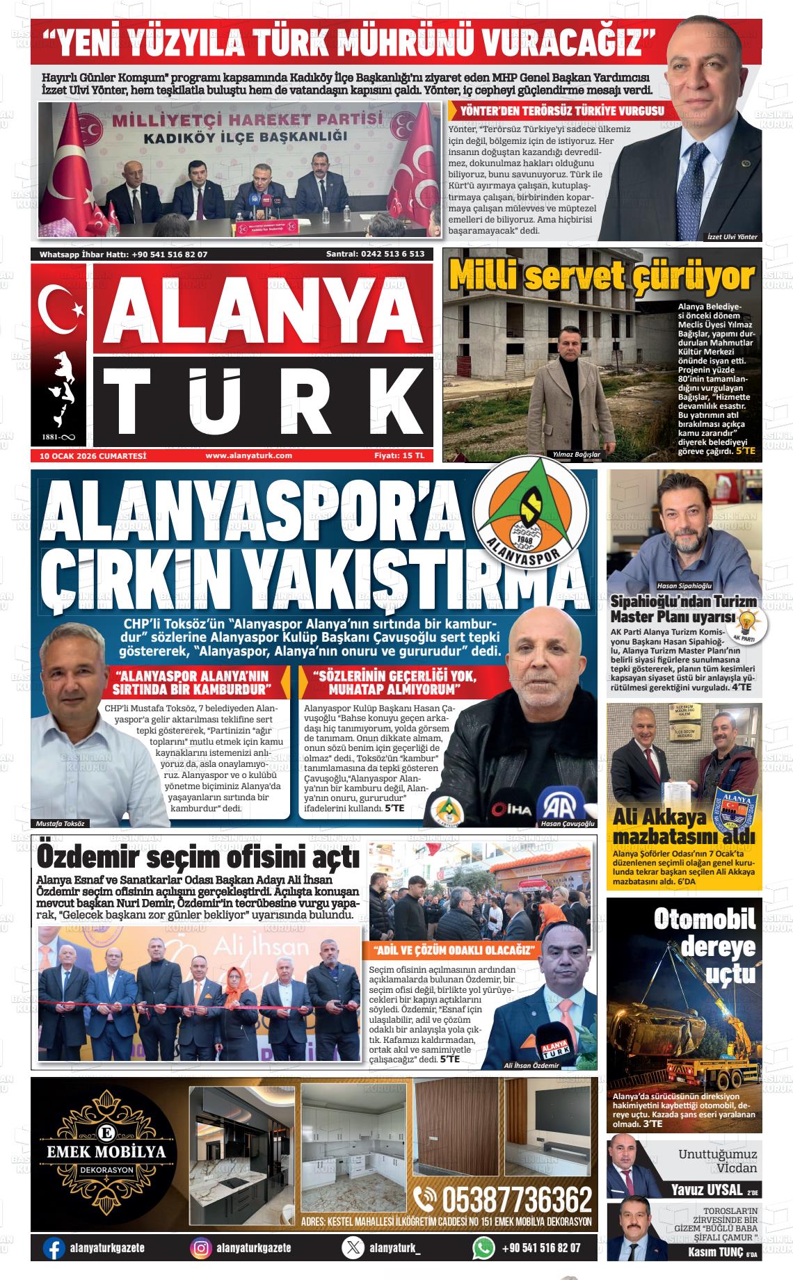 Antalya Yerel Gazeteleri 10 Ocak 2026, Cumartesi Günü Manşeti