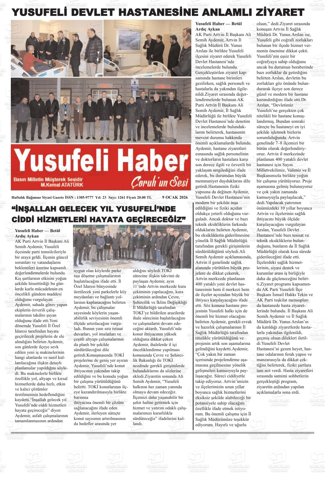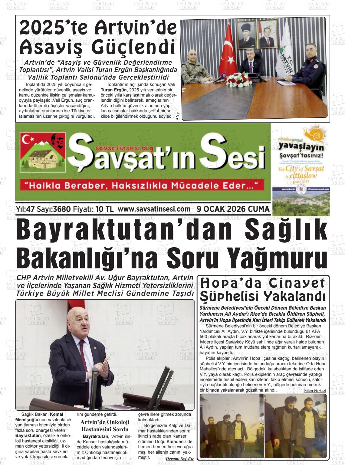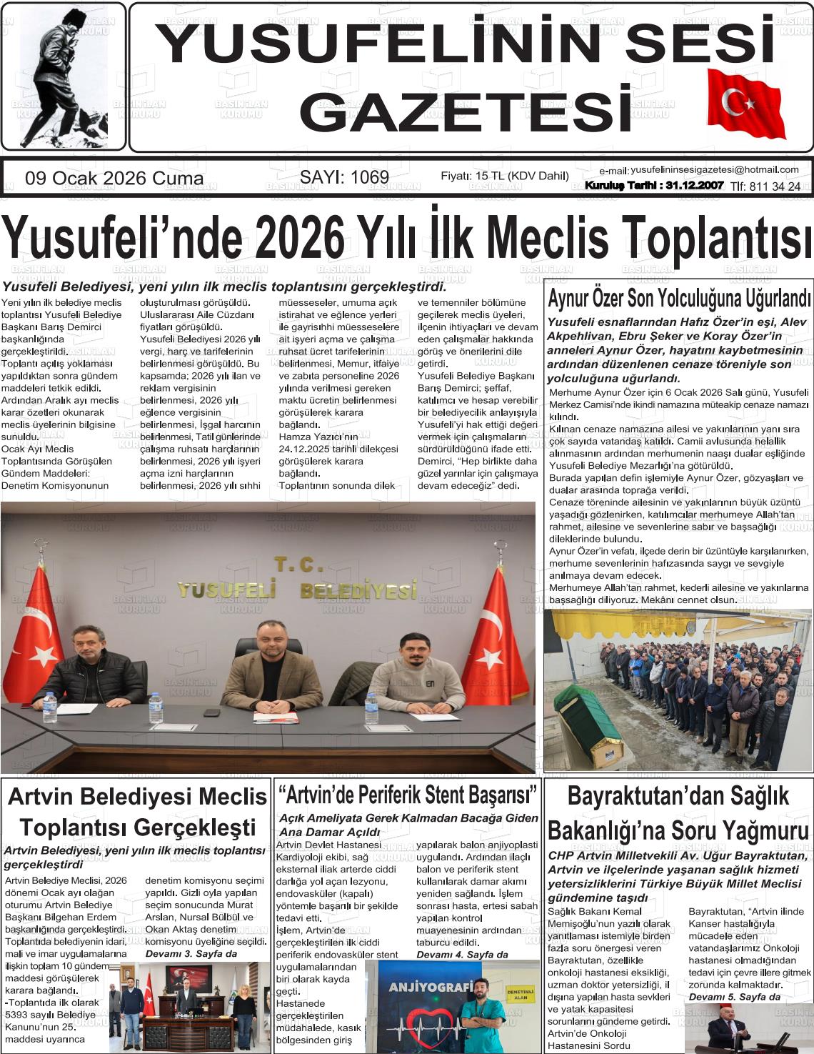 Artvİn Yerel Gazeteleri 09 Ocak 2026, Cuma Günü Manşeti